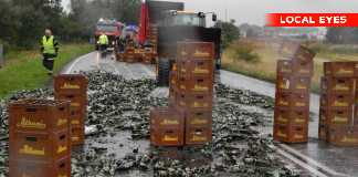 Ølbil tabte sin last i Padborg