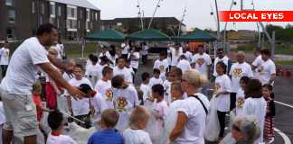 Børn og voksne samler skrald på Motalavej i Korsør