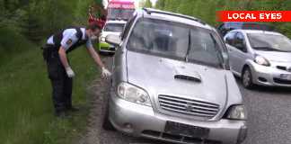 Flugtbilist kører hundrede meter på tre hjul