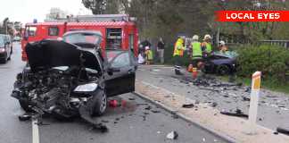 Personbiler i frontalt sammenstød – to alvorligt kvæstet
