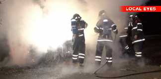 Civil politibil beskudt med fyrværkeri i Slagelse Søndag aften