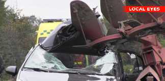 Løbsk plov skrællede taget af bil