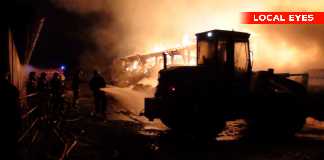 Kraftig brand i gård – dyr og andre bygninger i fare