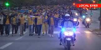 Svenske fans på vej til Parken