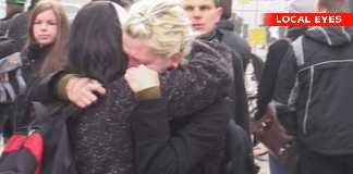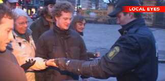 Sørgende autonome ligger blomster ved Ungdomshuset