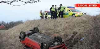 Tre kvæstet: Bil røg ud over stejl skrænt og landende på...
