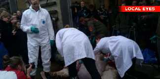Mystisk aktion med politi, brandvæsen og akutberedskabet.