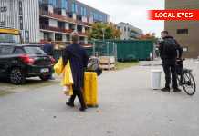 I Odense er 188 lejligheder i Munkebjerg Park ved at blive evakueret. Folk fik en mail om de skulle evakueres. Man ser folk har...