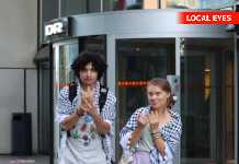 Billederne viser Greta Thunberg, og Salam El Youssef fra Studerende mod Besættelsen, der forlader DR Byen kl. 18:05 - efter fastlænkning med håndjern i...