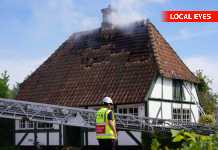 På Tåsinge er en person død i en brand i et hus. Vejen er spærret så brandvæsnet arbejder på stedet.
