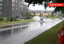Meget vand på kørebanen på Esrumvej i Helsingør