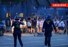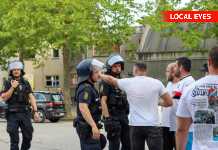 Politi-gruppevogn gik i stykker under voldelige optøjer efter fodboldkamp