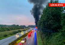 Voldsom brand i en lastbil skaber problemer på Vestmotorvejen