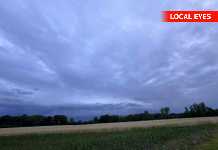 Kraftige byger rullede søndag aften ind over Odense. Her taget fra Marslev øst for odenseimg:m##708006##