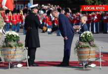 På Rønne havn blev de taget imod af Borgmester Jakob Trøst.