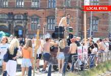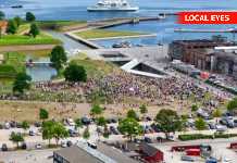 HELSINGØR: Efterfesten for Øl-løbet 2024 er godt i gang, og de mange mennesker har indfundet sig på græsplænen ved Værftets Madmarked.img:m##704400##