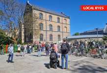 Omkring 200 personer er netop nu samlet på Københavns Universitet, ved Nansensgade, til