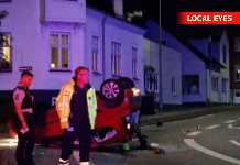 Voldsomt færdselsuheld i Korsør: Bil landede på taget