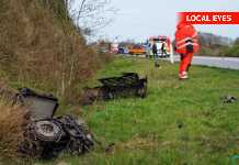 Flere personer svært tilskadekomne efter det voldsomme sammenstød – motor fløjet flere meter