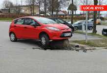 SNEKKERSTEN: En uheldig billist måtte onsdag se sin bil holde oven på en større sten, på p-pladsen ved Borupgårdcenteret i Snekkersten