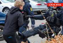 Se klippet: 1 bides af en politihund og 1 sparkes af en betjent