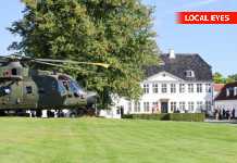 Kæmpe Merlin-helikopter på Marienborgs græsplæne