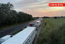 Uheld på fynske motorvej og kraftig kø efter uheld i V retning mellem Nyborg V og Langeskovimg:m##734741##