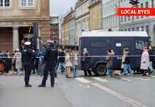 En gruppevogn med blå blink ankom til Gammel Strand kl. 14:15.Gruppevognen var ankommet ad Stormgade, hvor den både kørte udrykningskørsel med både horn og...