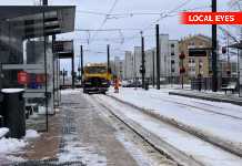 Odense: Specialkøretøj rydder letbanens spor for sne
