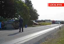 2 biler er stødt sammen i Gudme hvor en af den er endt helt ude på en mark, næsten 20 meter fra sammenstød stedet....