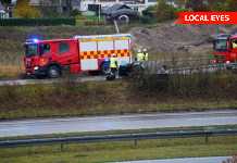 Ringsted : En Tesla er her til formiddag smadret på vestmotorvejen ved Ringsted. Tilkørsel 36 mod Jylland er spærret. Kan være det våde fører...