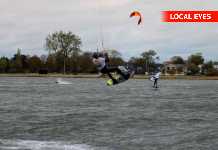 I Lagunen ved Amager Strandpark er der en masse kitesurfere.img:m##690595##