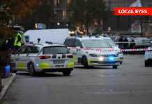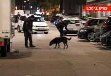 Politihunde og kommandostade fremme ved drabsstedet i København 19. okt. 2023