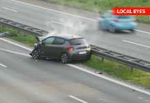 En bil er kørt galt på motorvejen E45 Hadsten motorvejen er spærret og trafikken bliver afviklet via nødsporet om føren er kommet...