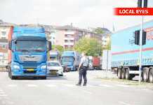 Flere lastbiler blokerer afkørsel 44 politiet er tilstede for at komme i dialog med chaufførerne img:m##679994##