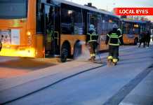 En bybus blev stoppet på Englandsvej ved Løjtegårdsvej, da der var røg fra bagenden af bussen, alle passagerer og chaufføren forlod bussen og...