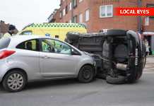 I Odense holder letbanen stille pga uheld på sporet ved Nyborgvej. To biler kørte sammen og den ene endte på siden og de ragede...