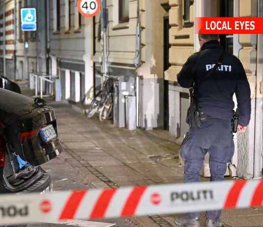 Københavns Politis mobile politistation - og tre betjente - er til stede ved gerningsstedet, i Holmbladsgade på Amager, tirsdag eftermiddag.Københavns Politi har skrevet dette...