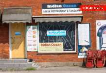 Restauranten Indian Ocean på Englandsvej 371 i Kastrup fremstår brandskadet torsdag eftermiddag, og der står brandskadet inventar udenfor, på den ene side af bygningen.