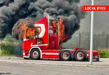 Brand i lastbil på Kongsted nord rasteplads