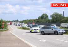 Afkørsel spærret ved Greve Mandag middag