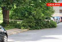 Københavns Politi har opsat minestrimmel på stor nedfalden gren