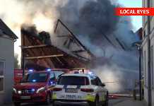 Voldsom brand : Skorsten og gavl styrtet sammen
