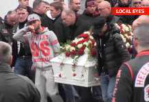 Kisten med den afdøde Hells Angels medlem, Michael Brokside blev fulgt af familie og flere hundrede rockere.De viste deres respekt og fulgte Michael...