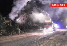 112 sendte stærkt reduceret brandvæsen til ild i et fritliggende udhus - det viste sig at være en voldsom brand i en stor stråtækt...