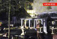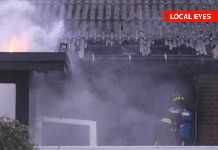 Naboen bankede på: Der står flammer gennem taget