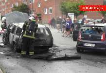 Fredag eftermiddag brød der pludselig en brand ud i en gammel sur Volvo i Tårnby ved København.Volvo'en holdt parkeret på en parkeringsplads bag SuperBest...