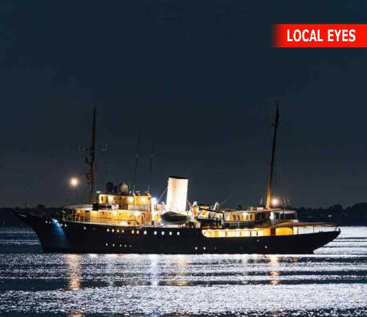 Kongeskibet ligger for anker mellem Helsingør og Snekkersten