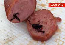 En ung mand og kvinde fik sig en grim overraskelse lørdag aften på en campingplads da de fandt en stor spyflue i en grillpølse....