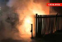 Kraftig brand: Kolonihavehus omspændt af flammer